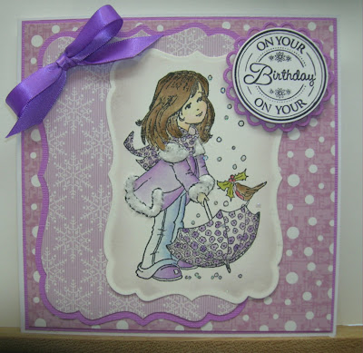 For my card I've used sketch 33, the papers are Dovecraft from my stash, the ribbon, flowers, gems, pearls are all old stash, my new stash is the LOLV stamp, isn't she adorable aww x