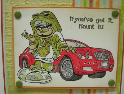 LOL! How cool is this guy! Great card Jill! I love the brick background. Perfect for this fellow and his wheels ;D Hugz, Cheryl
